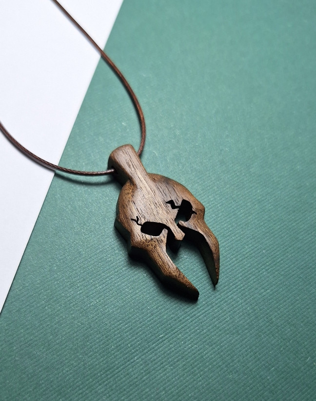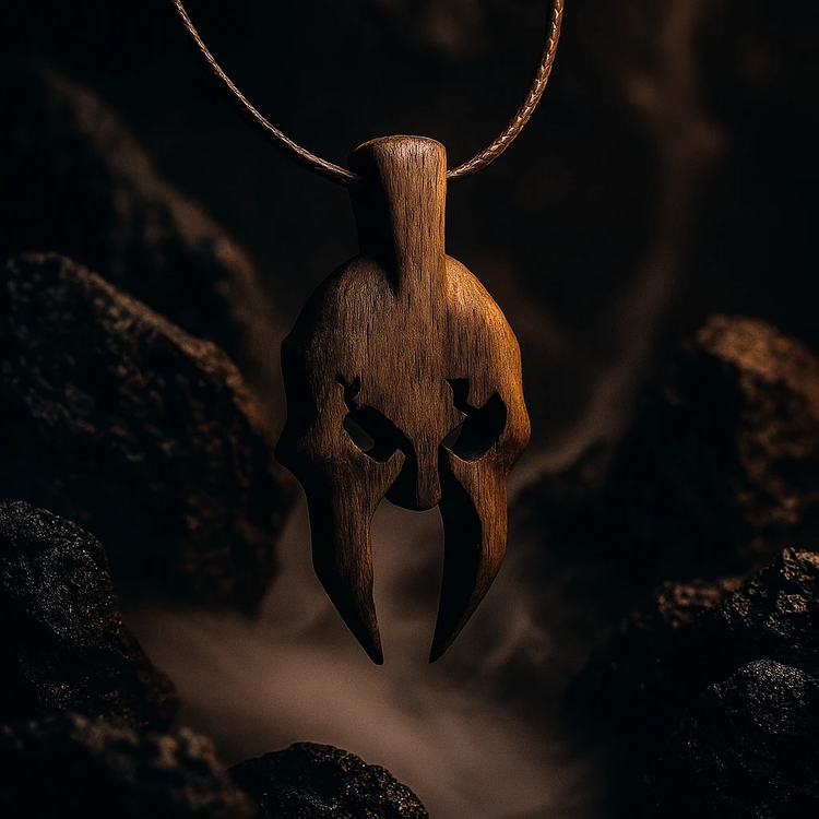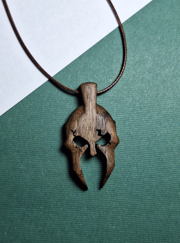 گردنبند چوب گردو – طرح کلاهخود اسپارتان