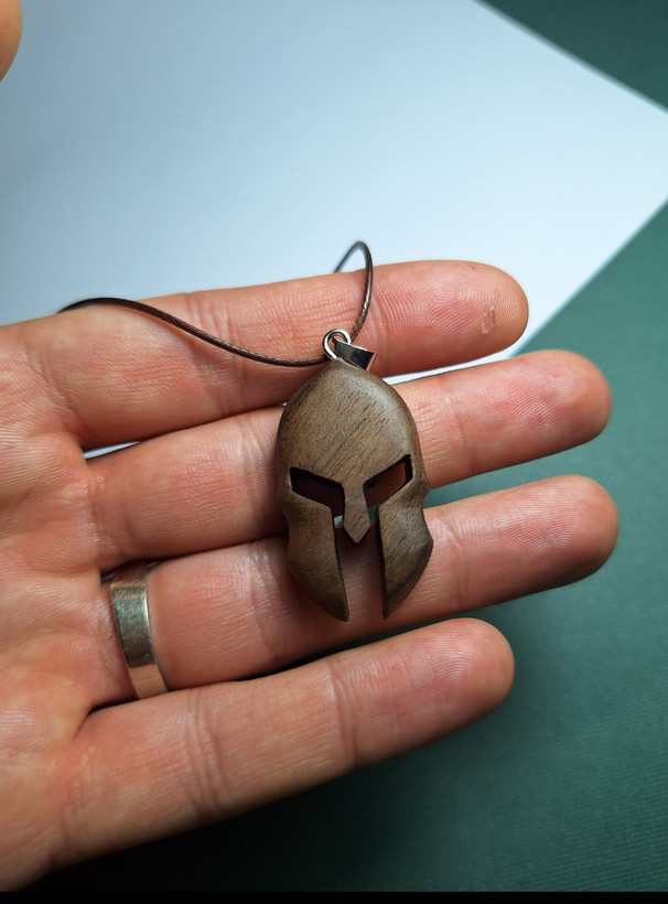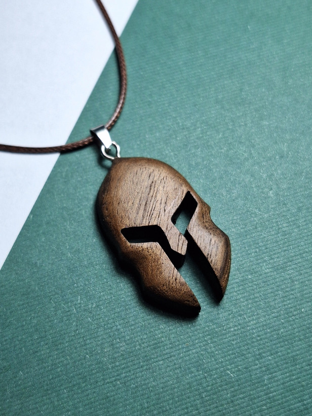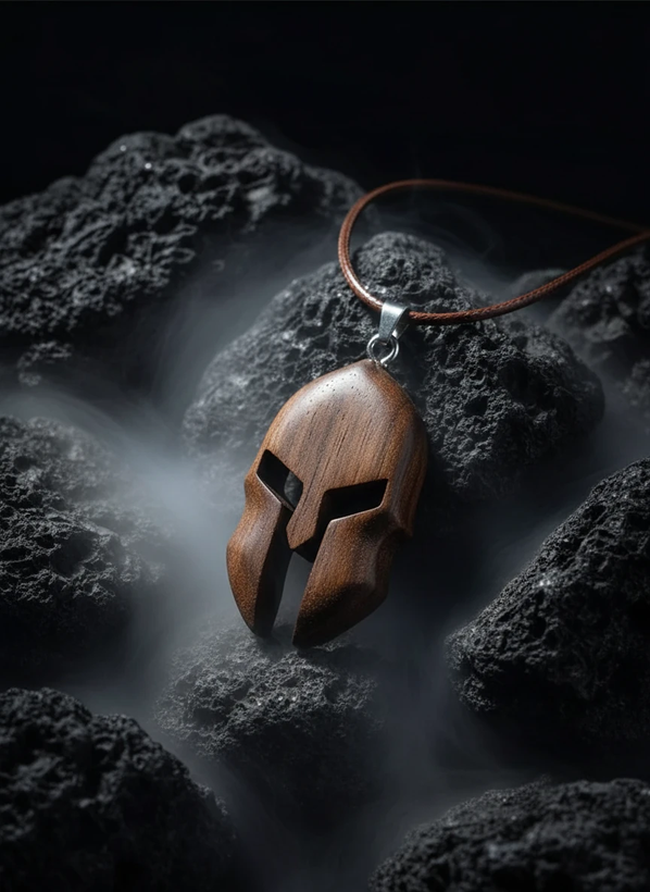 گردنبند چوبی طرح کلاهخود اسپارتان