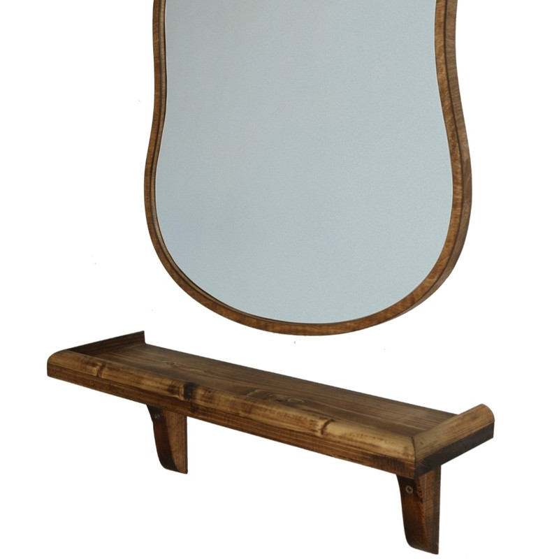 شلف زیر آینه چوبی، از جنس چوب روسی طبیعی بوده و قابلیت نصب به دیوار از طریق دو عدد پیچ را دارد. از جمله ویژگی بارز این محصول استحکام بالای آن در برابر تحمل وزن می باشد.