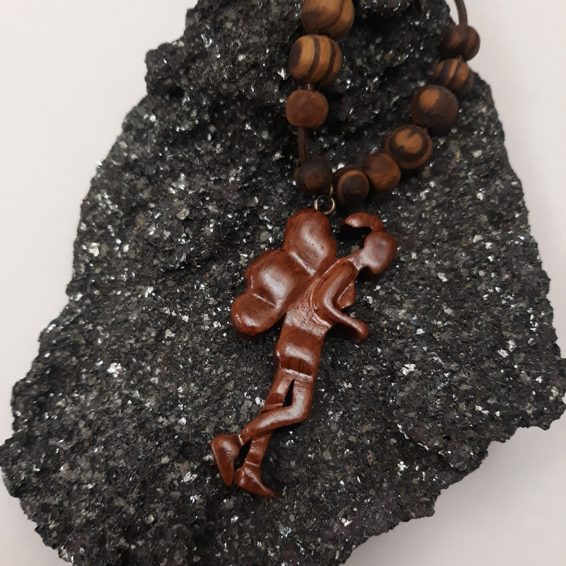 این گردنبند زیبا با استفاده از چوب گردو بصورت کاملا دستساز با مغار ساخته شده است و دارای بند طرح چرم بطول 45 سانت و 14 عدد مهره چوبی میباشد و انتهای این بند از طریق گره بسته شده و مشتری در صورت صلاح دید امکان کوتاه کردن این بند را دارد