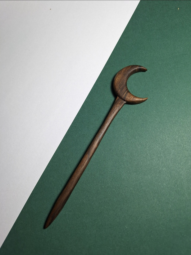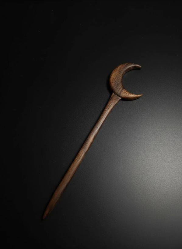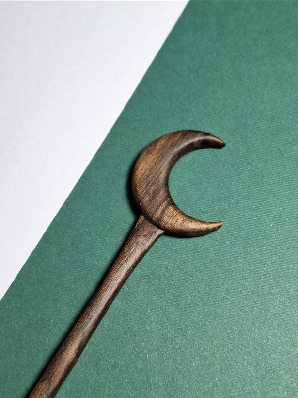 یک اکسسوری دستساز و الهامگرفته از زیبایی ماه در شبهای آرام. این کانزاشی از چوب گردوی طبیعی تراشیده شده و قسمت بالایی آن با نقش هلال ماه، ظاهری شاعرانه، مینیمال و کاملاً خاص به خود گرفته است.