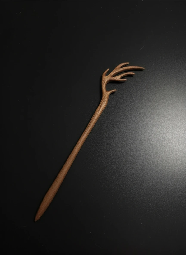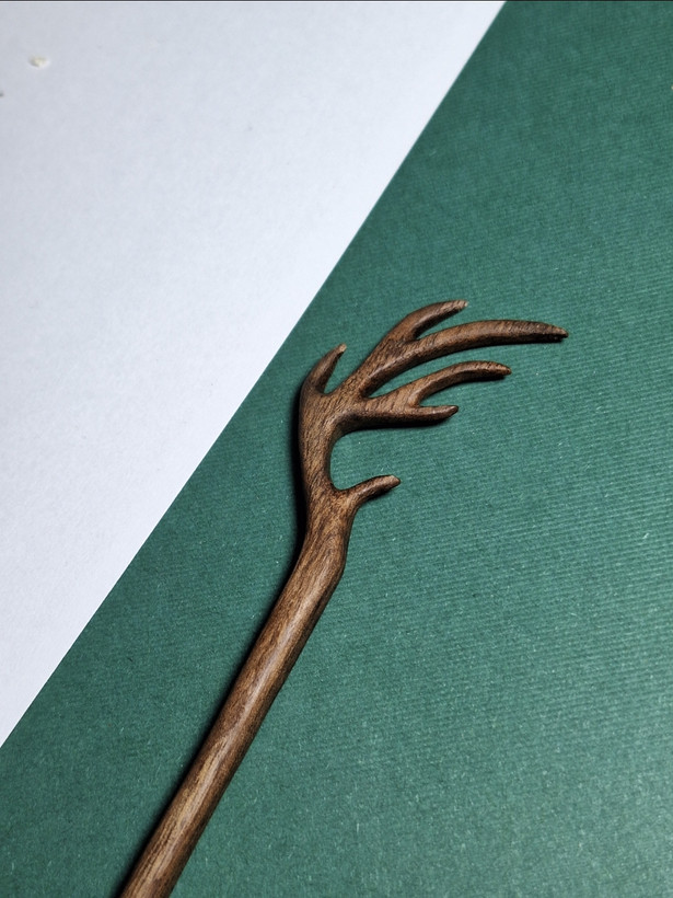 یک اکسسوری دستساز، طبیعی و چشمگیر که الهام خود را از شاخهای ظریف و بلند گوزن گرفته است. بدنهی کانزاشی از چوب گردوی طبیعی تراشیده شده و جزئیات بالای آن، با فرم شاخهمانند، جلوهای هنری و منحصربهفرد ایجاد کرده است.