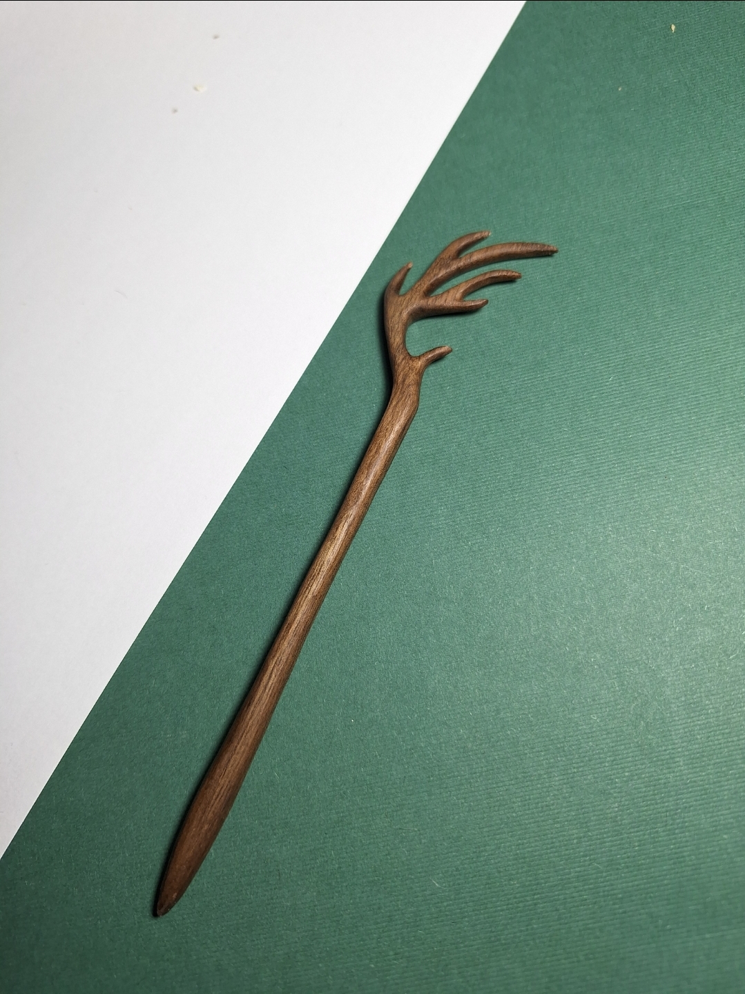 یک اکسسوری دستساز، طبیعی و چشمگیر که الهام خود را از شاخهای ظریف و بلند گوزن گرفته است. بدنهی کانزاشی از چوب گردوی طبیعی تراشیده شده و جزئیات بالای آن، با فرم شاخهمانند، جلوهای هنری و منحصربهفرد ایجاد کرده است.