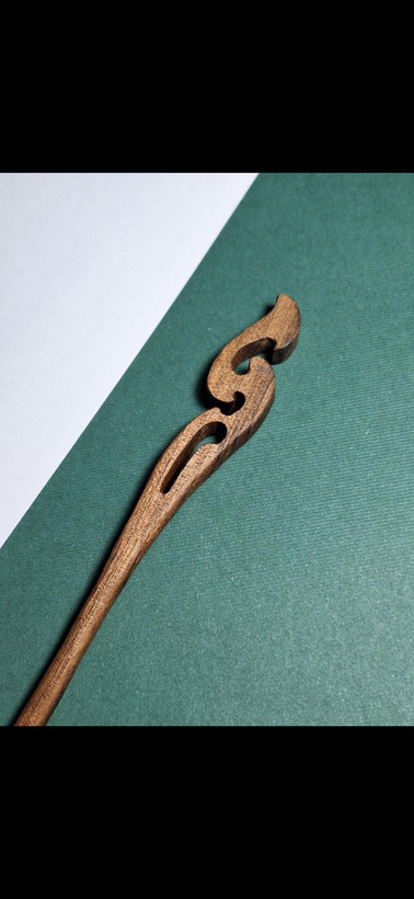 یک اکسسوری دستساز، سبک و طبیعی برای کسانی که دوست دارند موهایشان را با ظرافت و سادگی جمع کنند. این پین از چوب گردوی طبیعی تراشیده شده و فرم منحنی و موجمانند آن، علاوه بر زیبایی، کاربرد عالی برای نگهداشتن مو دارد.