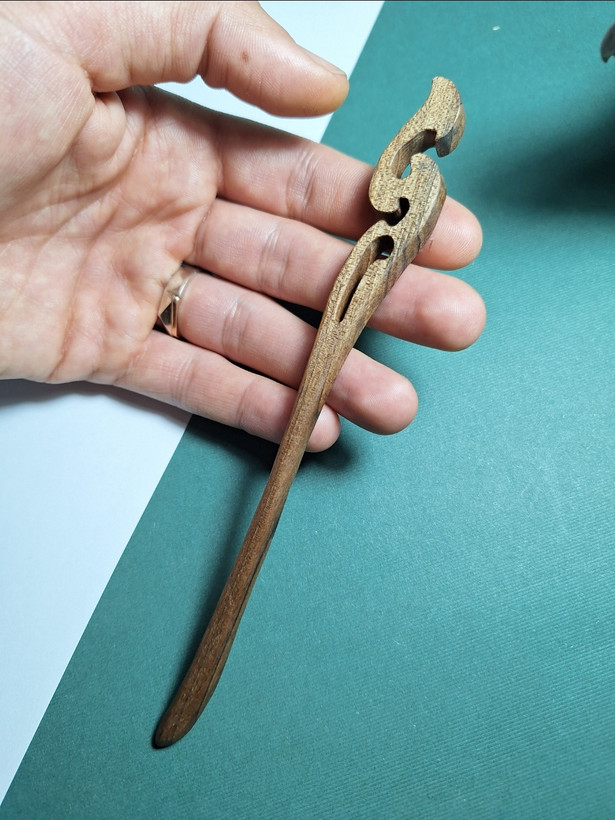 سطح چوب کاملاً صیقلیست و بهخاطر وزن بسیار پایین، استفاده طولانیمدت باعث خستگی یا کشیده شدن مو نمیشود. طراحی خالیکاریشده بالای پین، باعث شده هر قطعه ظاهر هنری و خاص خودش را داشته باشد.