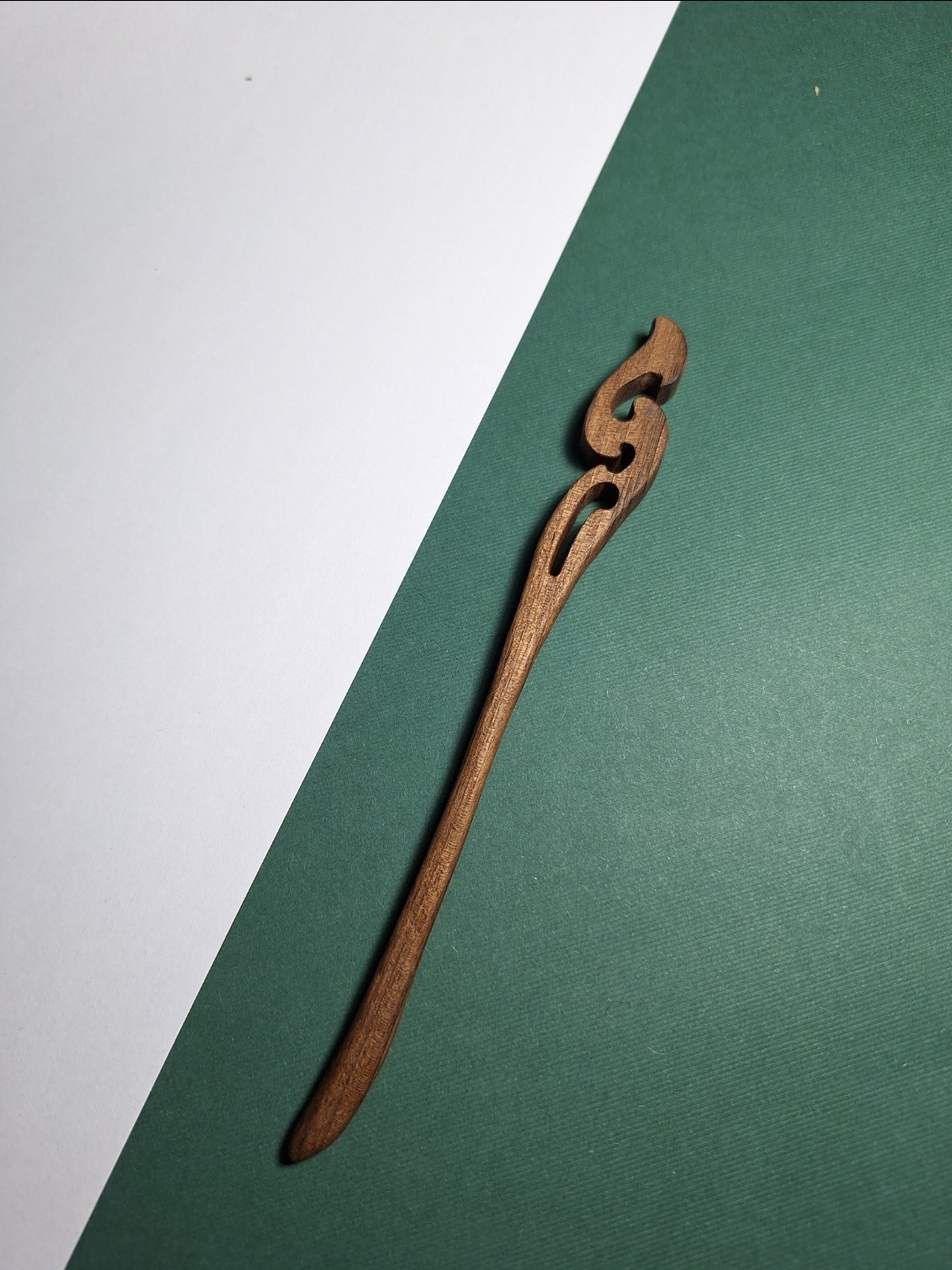 سطح چوب کاملاً صیقلیست و بهخاطر وزن بسیار پایین، استفاده طولانیمدت باعث خستگی یا کشیده شدن مو نمیشود. طراحی خالیکاریشده بالای پین، باعث شده هر قطعه ظاهر هنری و خاص خودش را داشته باشد.