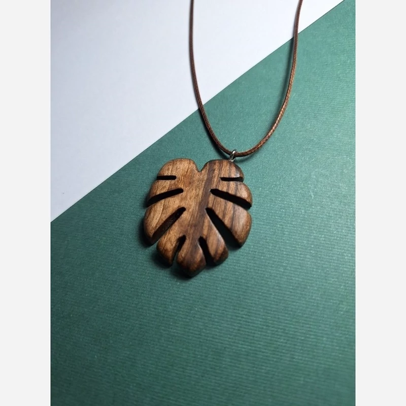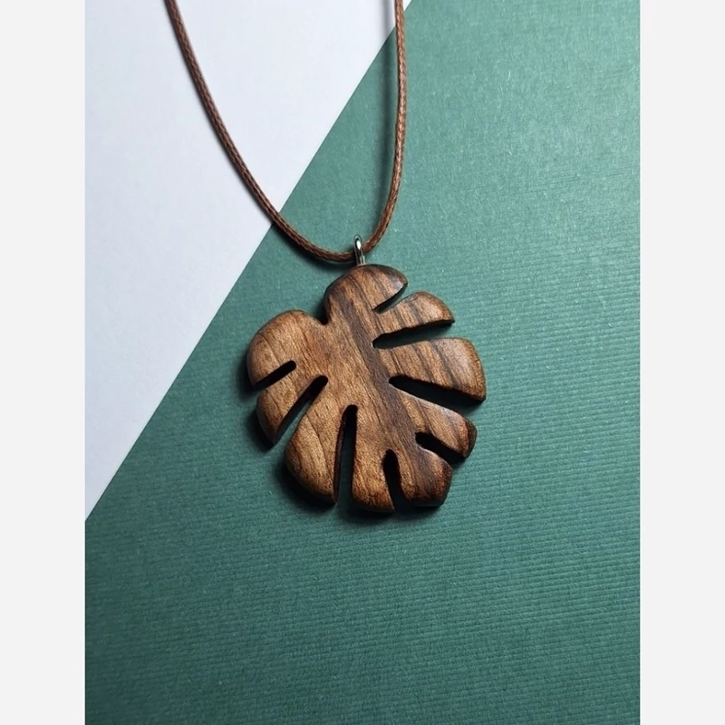 گردنبند چوب گردو – طرح برگ مانسترا (Monstera Leaf)