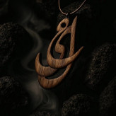 این گردنبند دستساز با الهام از خوشنویسی فارسی، اسم «علی» را در قالب فرمی سیال، قدرتمند و کاملاً ارگانیک روایت میکند. متریال اصلی، چوب گردوی طبیعی است.