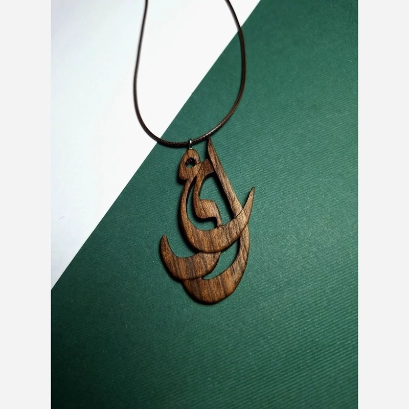 این گردنبند دستساز با الهام از خوشنویسی فارسی، اسم «علی» را در قالب فرمی سیال، قدرتمند و کاملاً ارگانیک روایت میکند. متریال اصلی، چوب گردوی طبیعی است.