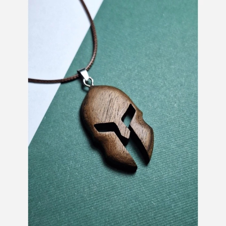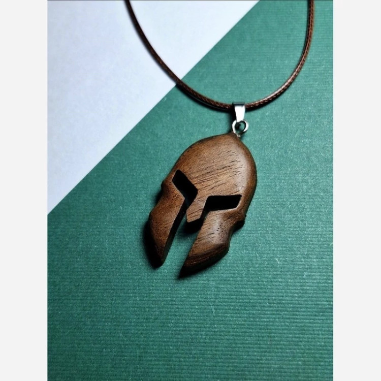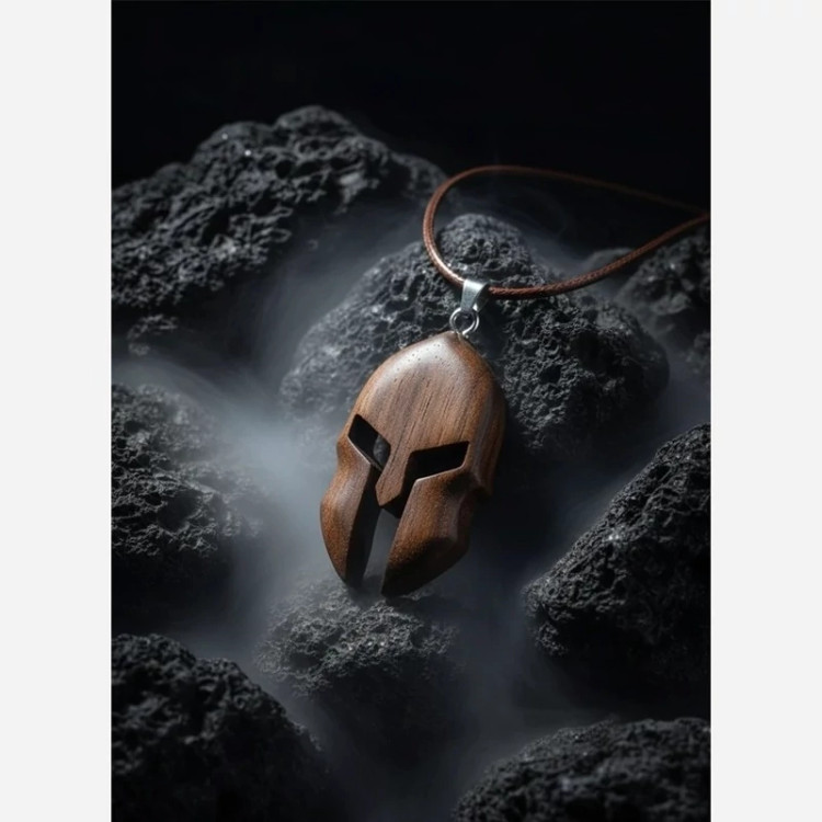این آویز دستساز از چوب گردوی طبیعی با الهام از کلاهخود اسطورهای اسپارتانها تراش خورده است؛ نمادی از قدرت، جسارت و ایستادگی. فرم زاویهدار چشمها و برشهای دقیق روی چوب، هویت قدرتمند و مردانهای به این طرح میبخشد.