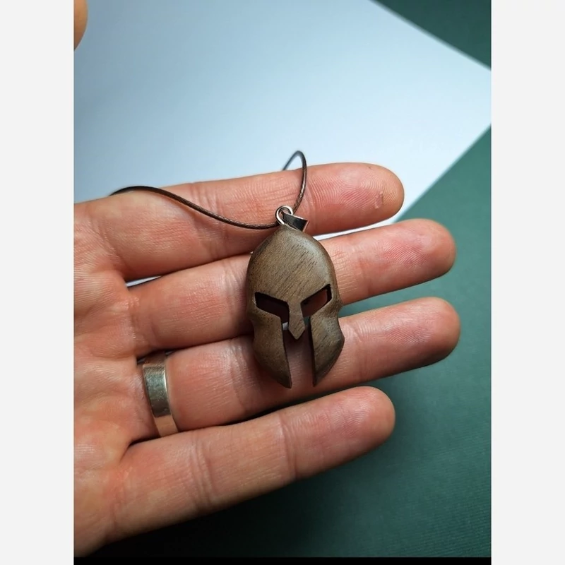 این آویز دستساز از چوب گردوی طبیعی با الهام از کلاهخود اسطورهای اسپارتانها تراش خورده است؛ نمادی از قدرت، جسارت و ایستادگی. فرم زاویهدار چشمها و برشهای دقیق روی چوب، هویت قدرتمند و مردانهای به این طرح میبخشد.