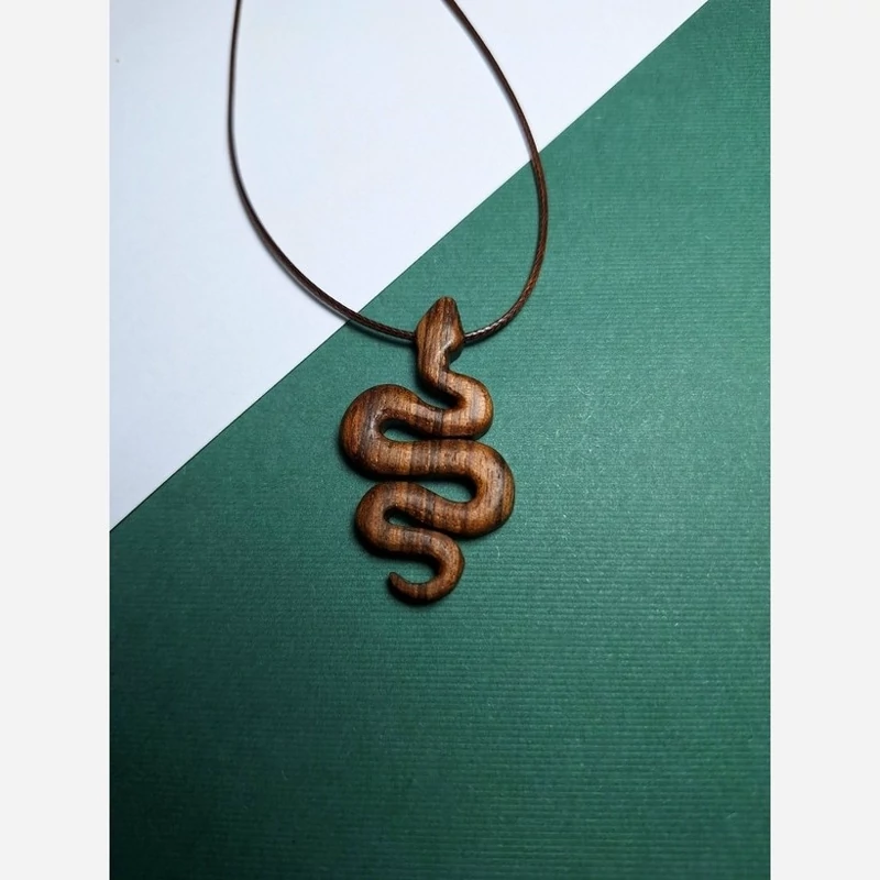 گردنبند چوبی طرح مار