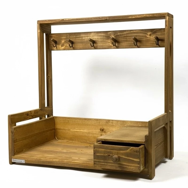 شلف یا استند نگهدارنده دستگاه اسپرسو ساز خانگی که دارای یک کشو جهت نظم دادن به وسایل جانبی و محتویات قهوه ساز می باشد . این شلف رومیزی دارای 4 عدد جای ماگ و شات قهوه می باشد که علاوه بر این که طراحی آن را زیبا تر کرده،همچنین باعث کاربردی بودن این شلف نیز شده است.بدنه ی این شلف کاملا از چوب طبیعی ساخته شده که استحکام مطلوبی دارد.